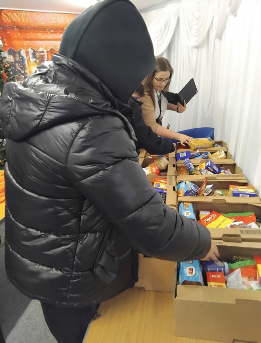 Helping Pack Christmas Hampers